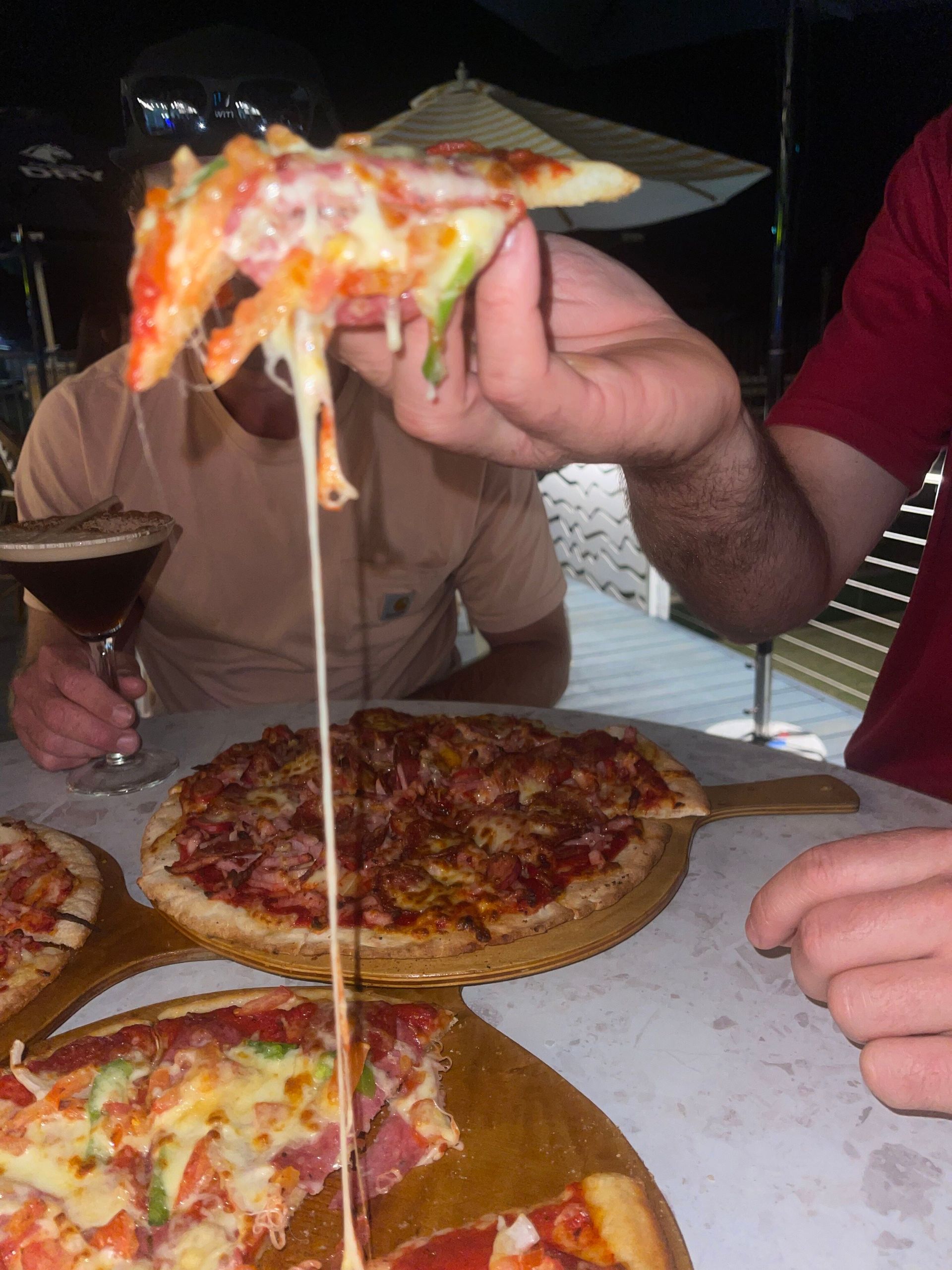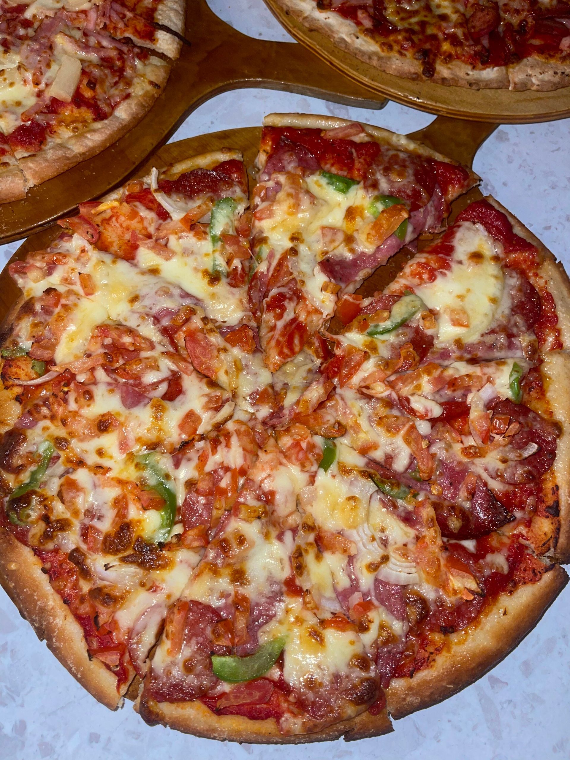 Pepperoni, onion, capsicum, mushroom, ham, pineapple, olives. mozzarella cheese